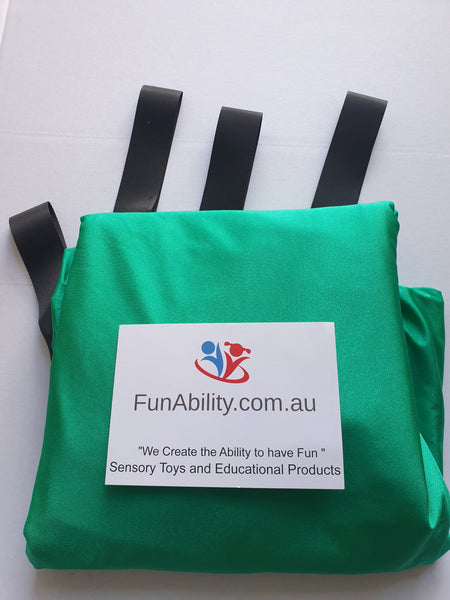 Helps children develop body awareness and motor planning as they stretch and crawl their way through from one end to the other. The crawling is terrific "heavy work" and provides loads of sensory input. Nylon handles on both ends allow a peer, parent or therapist to hold the tunnel open for the child to crawl through, creating opportunities for social interaction and turn-taking.