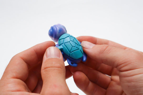 Calm Buddi Turtle is a compact anxiety relief product designed to offer a soothing and grounding experience. Constructed from 100% recycled post-consumer plastic, this fidgeting tool has calming curves and surfaces, and an inner cavity for added stimulation. Its small size makes it easy to carry in a pocket or on a keyring, making it an ideal choice for managing fidgety situations. To induce calm, rub the smooth underside of the shell, or press the spiked surface for a grounding effect. Dimensions: 6cm x 4cm x 2cm.